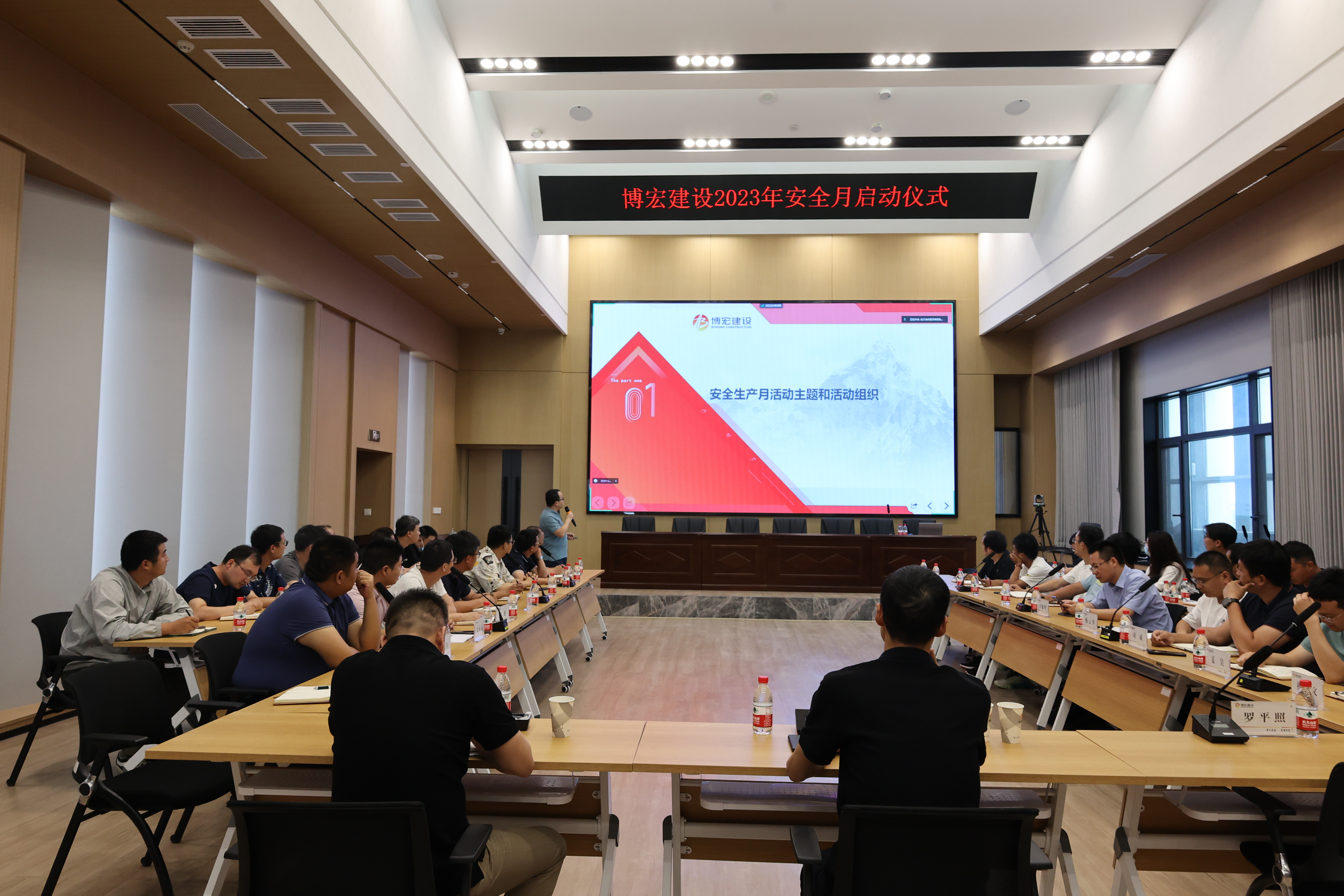 5月30日下午,博宏建設集團2023年“安全生產月”啟動儀式順利舉行,黨委書記、董事長、總經理鄒勇,總經理助理李暉,市內外各項目部負責人及安全崗位人員共計50余人線上線下同步參與活動。